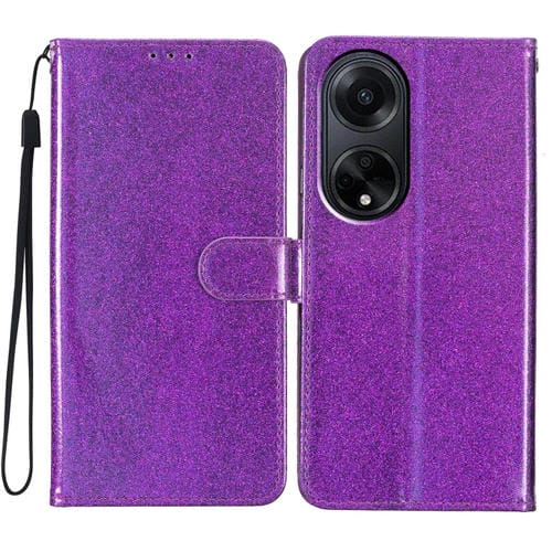 Para Oppo A98 Glitter Powder Flip Funda de Cuero para Teléfono (Púrpura)