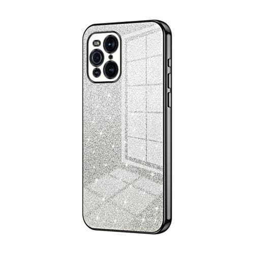 Para Oppo Find X3 / Find X3 Pro Estuche para Teléfono Galvanizado con Polvo de Brillo Degradado (Negro)