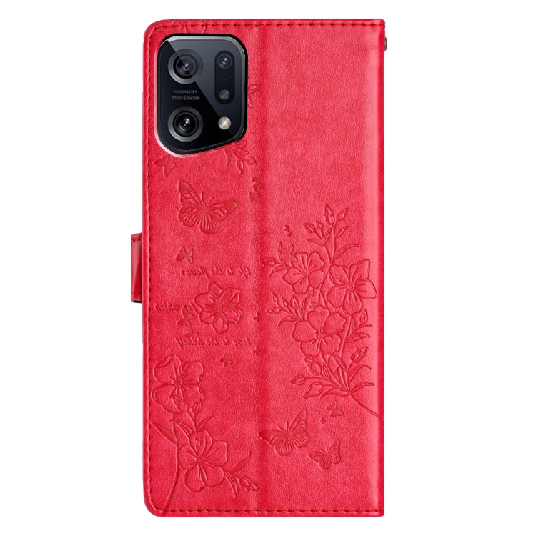 Para Oppo Find X5 Funda para Teléfono de Cuero con Relieve de Flor de Amor y Mariposa (Rojo)