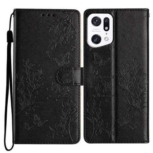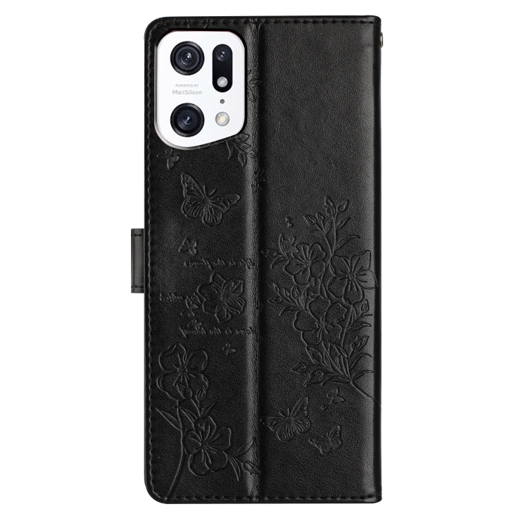 Para Oppo Find X5 Pro Butterfly Love Flower Funda de Cuero para Teléfono En Relieve (Negro)