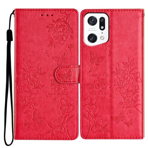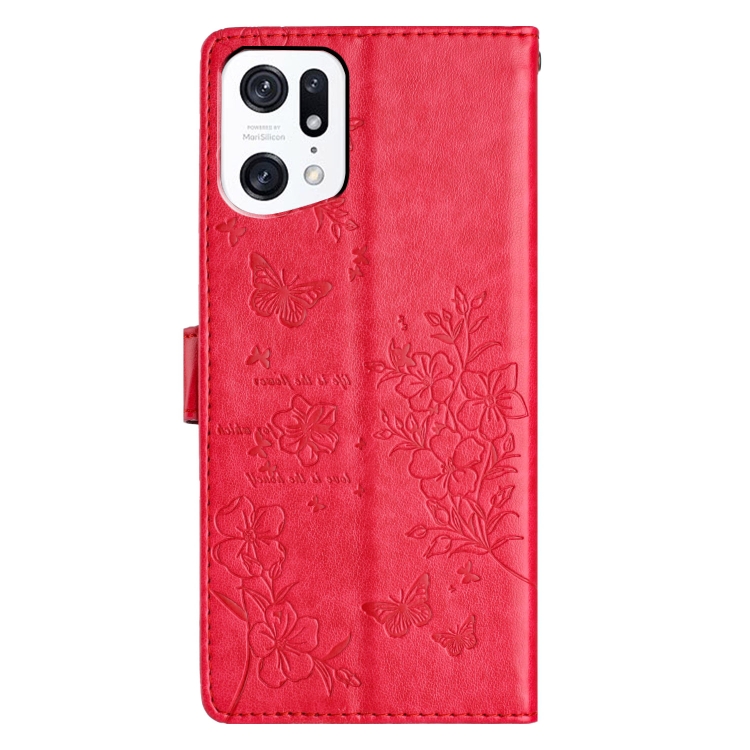 Para Oppo Find X5 Pro Butterfly Love Flower Funda de Cuero para Teléfono En Relieve (Rojo)