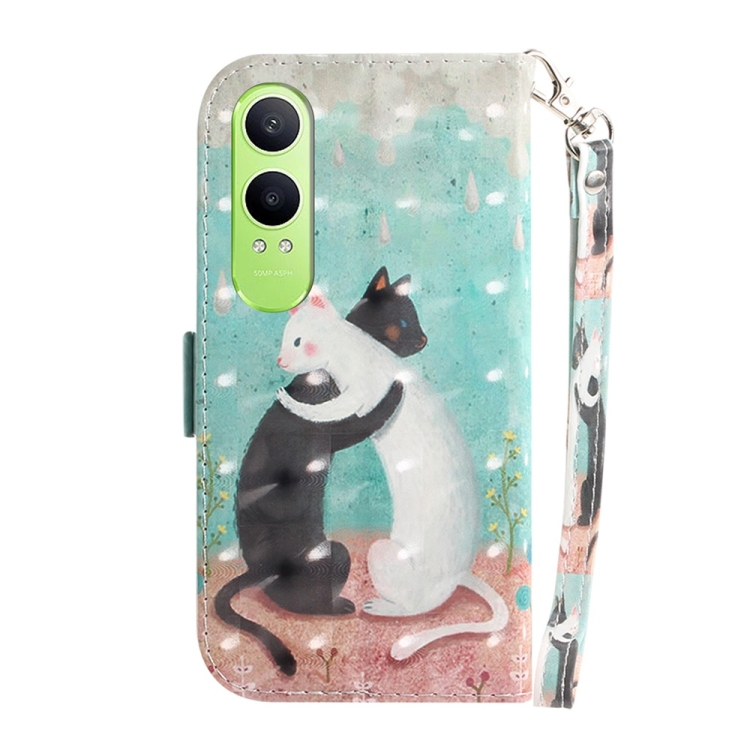Para Oppo K12X Funda de Teléfono de Cuero con Tapa Horizontal de Color 3D (Gato Blanco Negro)