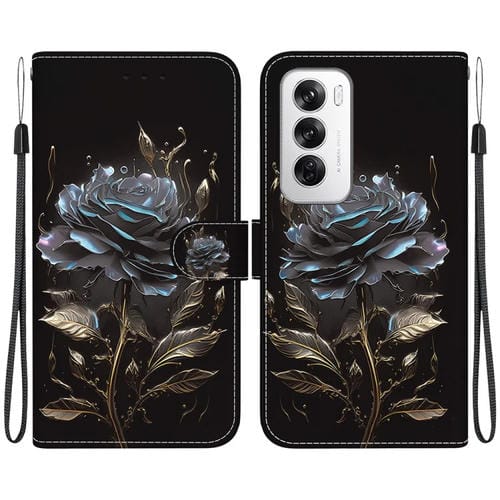 Para Oppo Reno12 5G Funda de Teléfono de Cuero con Dibujo Coloreado con Textura de Cristal Global (Rosa Negra)