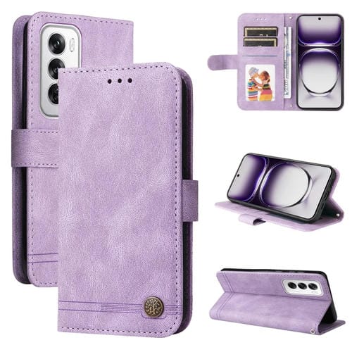 Para Oppo Reno12 5G Global Skin Feel Life Tree Funda de Cuero con Botón de Metal (Púrpura)