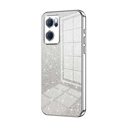 Para Oppo Reno7 5G Estuche para Teléfono Galvanizado con Polvo de Brillo Degradado (Plata)