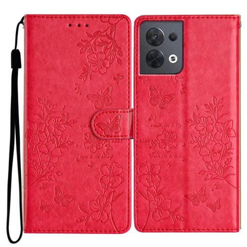 Para Oppo Reno8 5G Global Butterfly Love Flower Funda de Cuero para Teléfono En Relieve (Rojo)