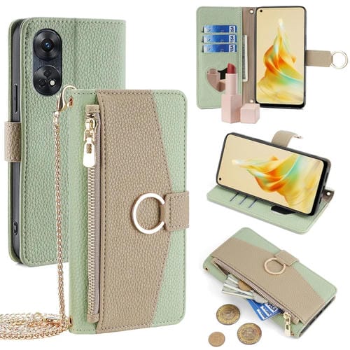 Para Oppo Reno8 T 4G Crossbody Litchi Texture Funda de Cuero para Teléfono (Verde)