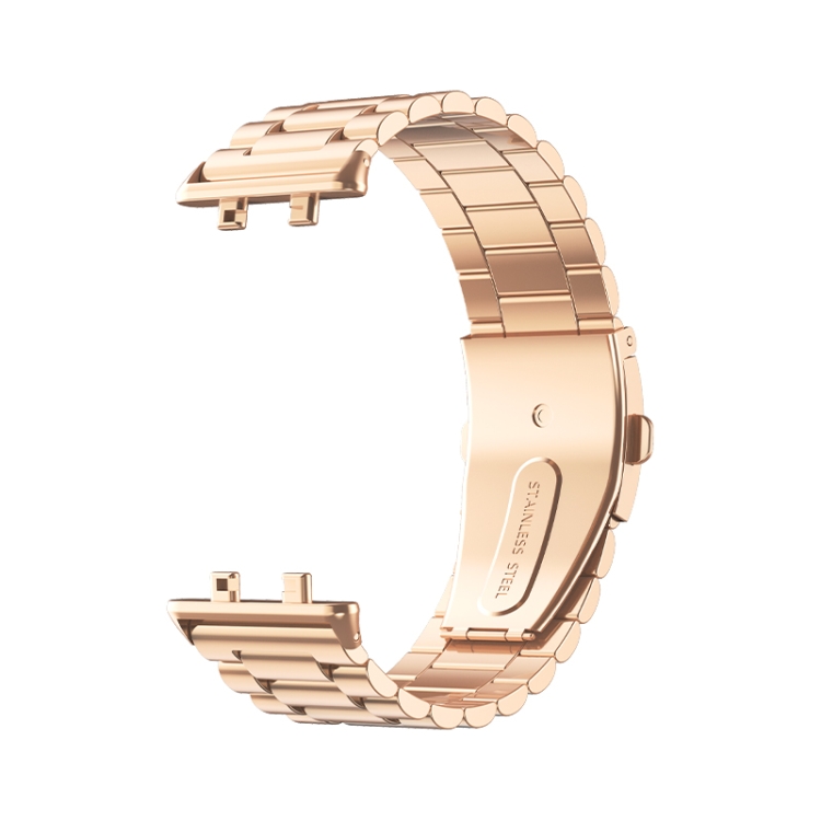 Correa de Reloj para Oppo Watch 3 Pro de acero inoxidable con hebilla plana de tres cuentas (Oro Rosa)