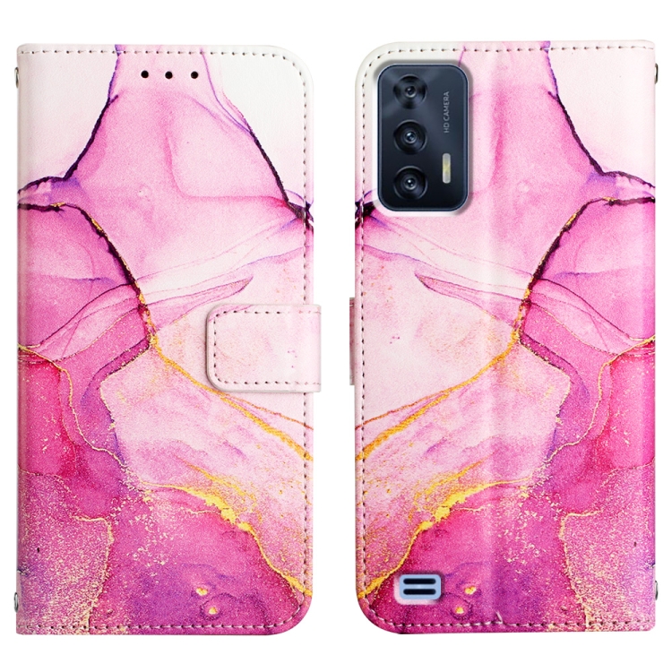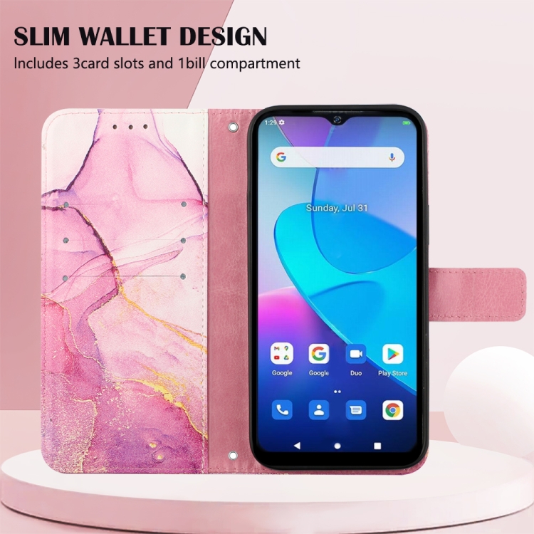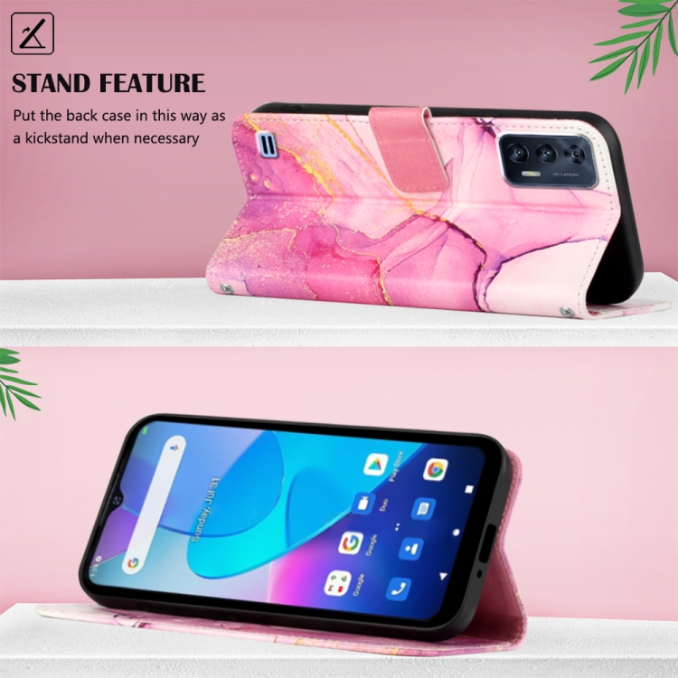 Funda con Tapa de Cuero para Oukitel C31 Pt003 Diseño Mármol (Rosa Púrpura Dorado)