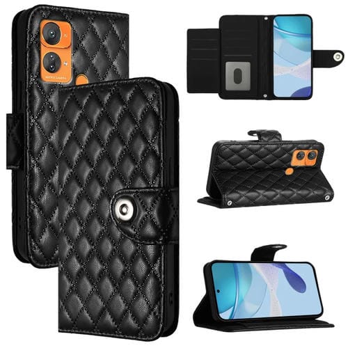 Funda para Oukitel C33 de Cuero con Tapa Textura Rómbica y Cordón (Negro)