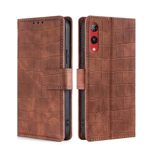 Funda de Cuero Rakuten Hand 4G Skin Feel Cocodrilo con Cierre Magnético (Marrón)