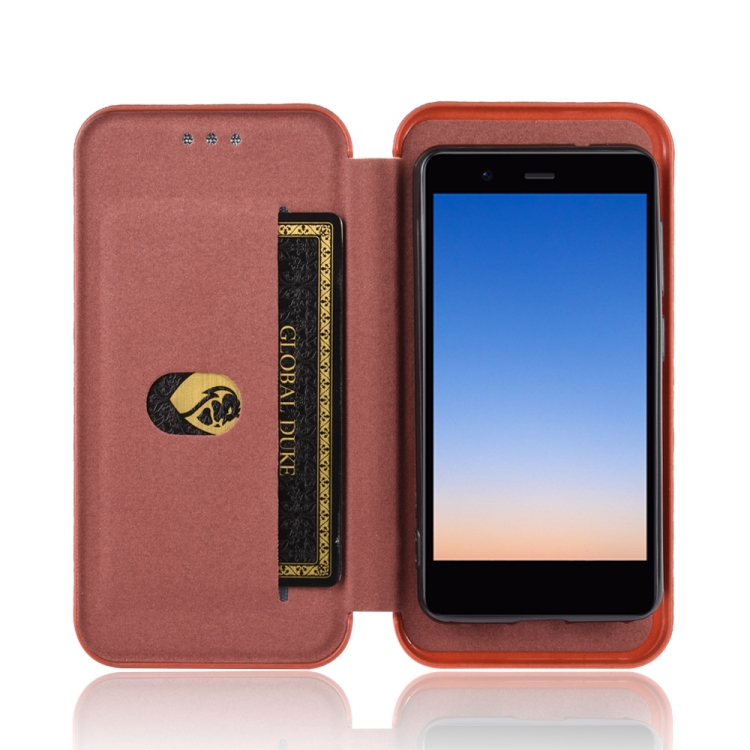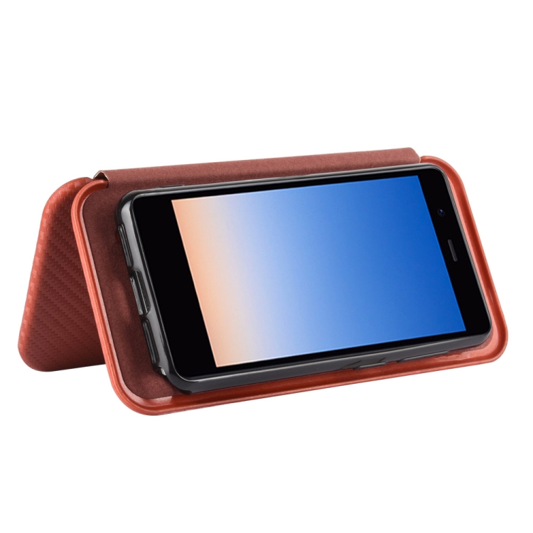 Funda para Rakuten Mini Cuero con Tapa Magnética Horizontal Textura Fibra de Carbono TPU + PC + PU con Ranura para Tarjeta (Marrón)