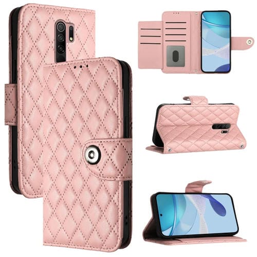 Para Redmi 9/9 Prime India Funda para Teléfono con Tapa de Cuero con Textura Rómbica y Cordón (Rosa Coral)
