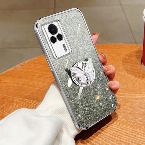Para Redmi K60E Estuche para Teléfono de TPU con Soporte de Mariposa con Brillo Degradado Plateado (Plata)