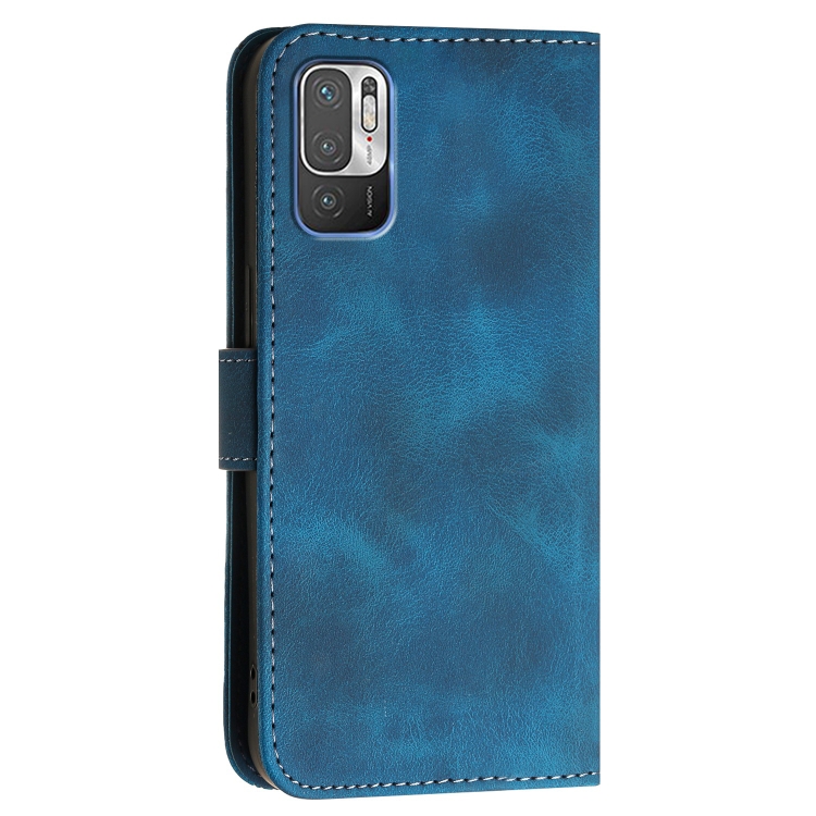 Para Redmi Note 10 Je Versión Yx0080 Funda de Cuero con Tapa con Patrón En Relieve de Mariposa y Cuadrícula con Cordón (Azul Oscuro)