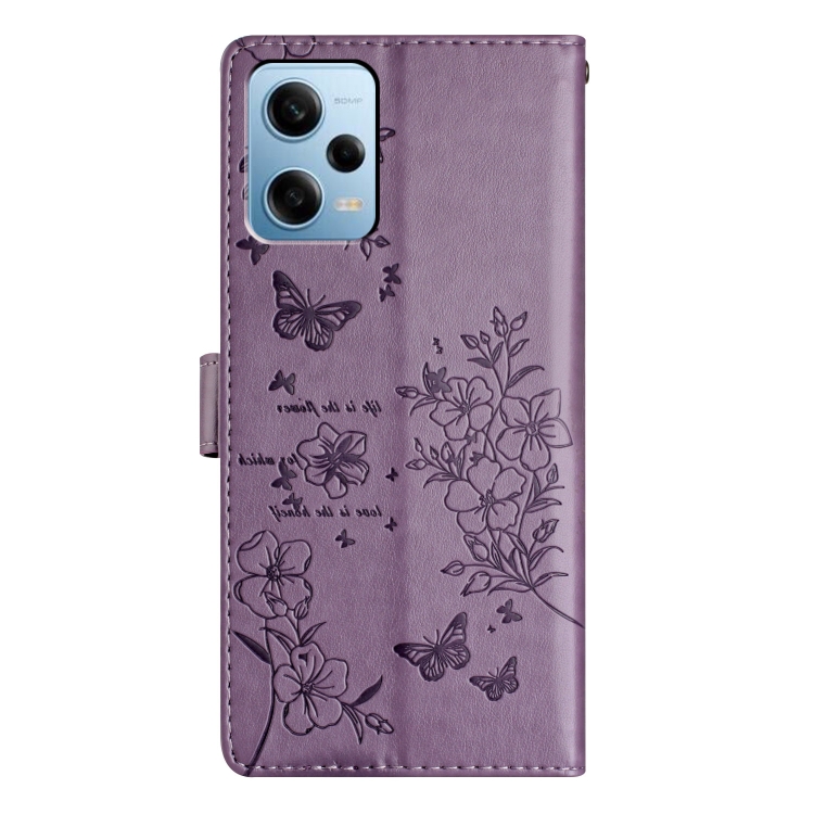 Para Redmi Note 12 Pro 5G Funda de Cuero para Teléfono con Mariposas y Flores Globales (Púrpura)