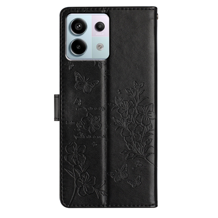Para Redmi Note 13 Pro 5G Funda de Cuero para Teléfono con Mariposas y Flores (Negro)