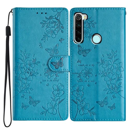 Para Redmi Note 8T Funda de Cuero para Teléfono con Mariposas y Flores (Azul)