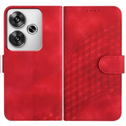 Para Redmi Turbo 3 / Xiaomi Poco F6 Yx0060 Funda de Cuero para Teléfono con Relieve y Cabeza de Elefante con Cordón (Rojo)