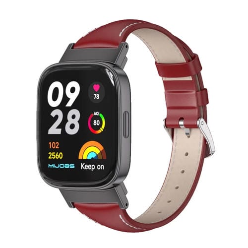 For Redmi Watch 3 Mijobs Slim Genuine Leather Watch Band (Black Red)