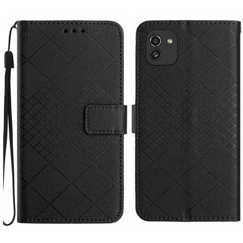 Funda de Cuero Samsung Galaxy A03 166mm Eu Textura Rejilla Rómbica (Negro)