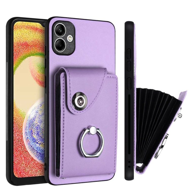 Funda para Teléfono Samsung Galaxy A04 4G de PU con Soporte para Anillo y Bolsa para Tarjeta (Púrpura)