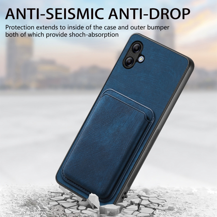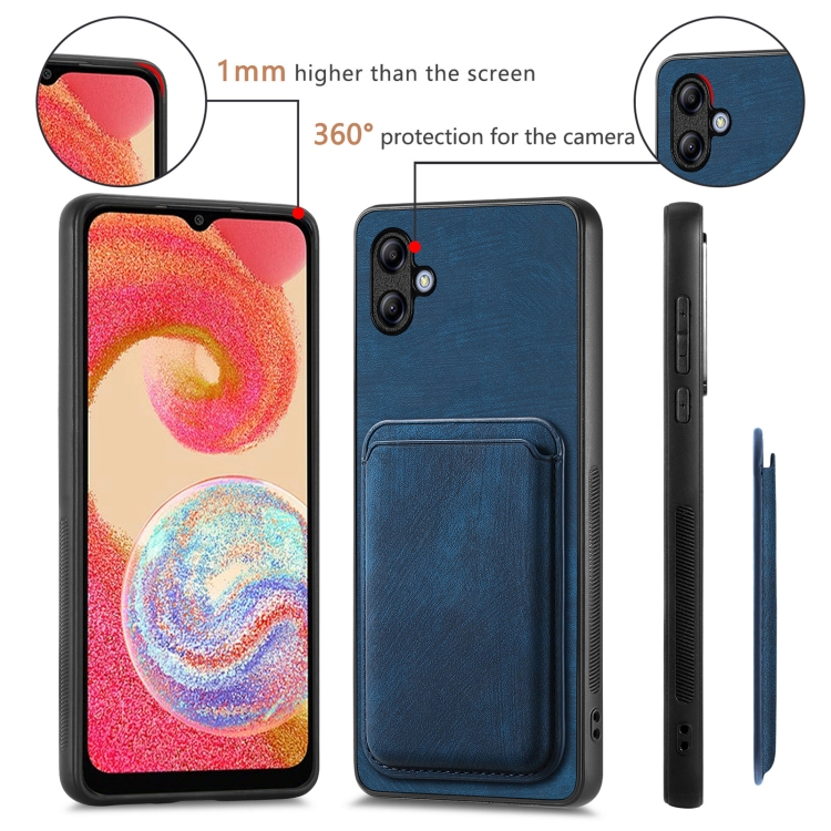 Funda de teléfono Samsung Galaxy A04E magnética con bolsa de tarjeta de cuero retro (Azul)