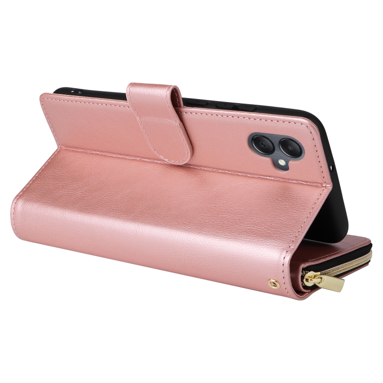 Funda de cuero para Samsung Galaxy A05 bolso tipo billetera con 9 ranuras para tarjetas y cremallera (Oro Rosa)