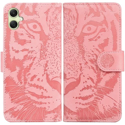 Funda de teléfono Samsung Galaxy A05 cuero con tapa patrón tigre (Rosa)