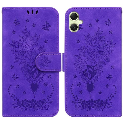 Funda para Teléfono Samsung Galaxy A05 Cuero Relieve Mariposa y Rosa (Púrpura)
