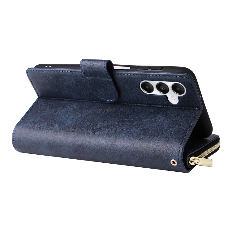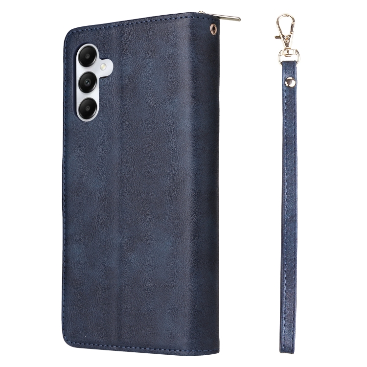 Funda para Samsung Galaxy A05S Bolsa Tipo Billetera con 9 Ranuras para Tarjetas y Cremallera (Azul)