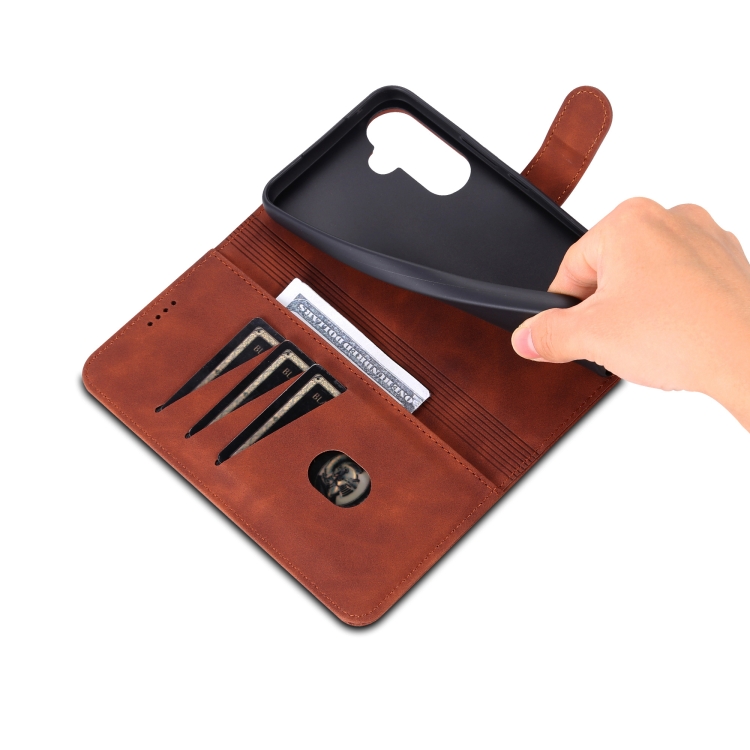 Funda de Cuero con Tapa para Samsung Galaxy A05S Azns Skin Feel Calf Texture (Marrón)