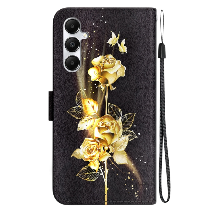 Funda de Cuero Samsung Galaxy A05S Dibujo Coloreado Textura de Cristal (Mariposa Dorada Rosa)