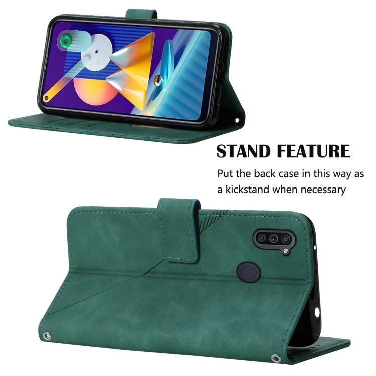 Funda Crossbody 3D En Relieve para Samsung Galaxy A11 / M11 Caja de Cuero (Verde Oscuro)