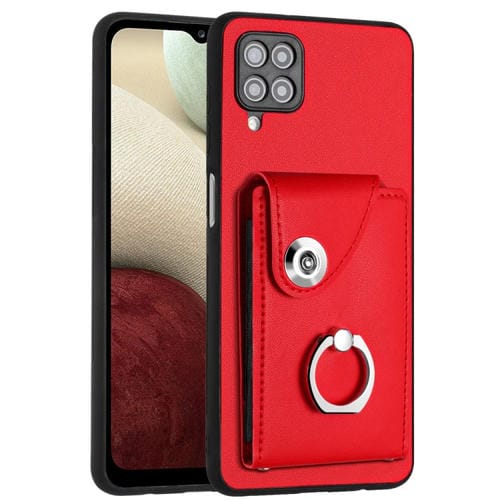 Funda para Teléfono Samsung Galaxy A12 de PU con Soporte para Anillo y Bolsa para Tarjeta (Rojo)