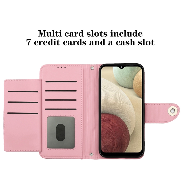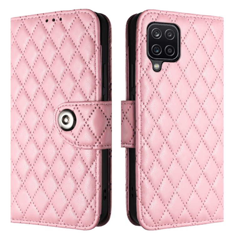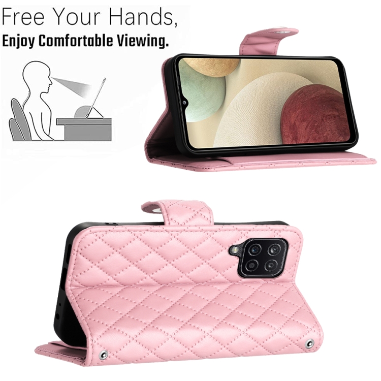 Funda para Teléfono Samsung Galaxy A12 M12 Cuero con Tapa Textura Rómbica y Cordón (Rosa)