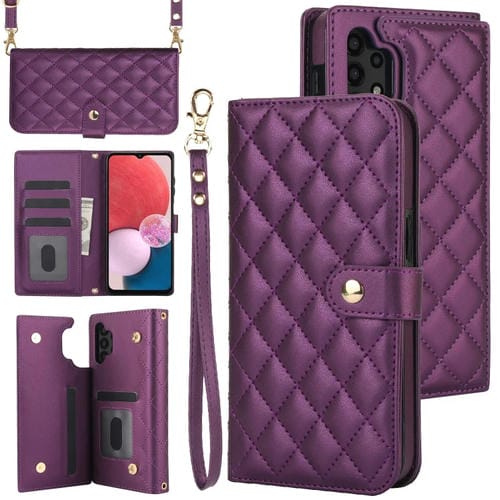 Estuche para Teléfono Samsung Galaxy A13 4G y 5G Crossbody Cuero Rómbico Multifunción (Púrpura Oscuro)