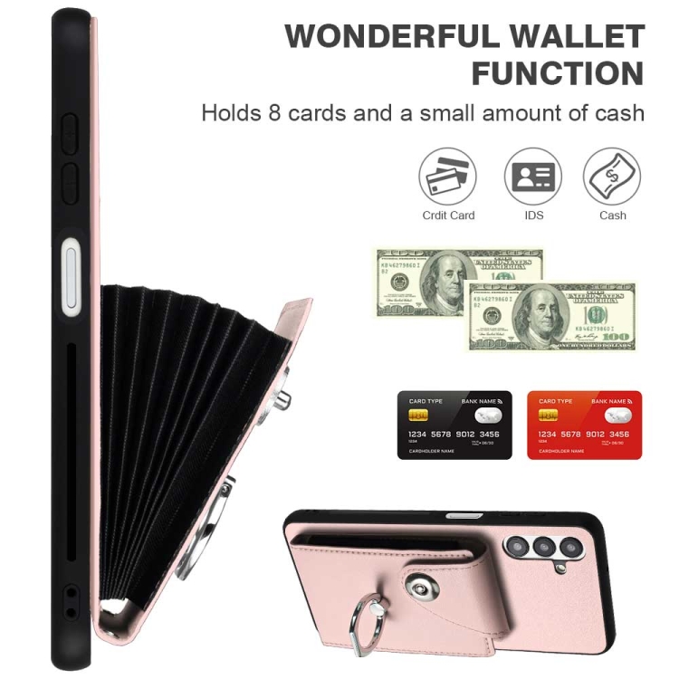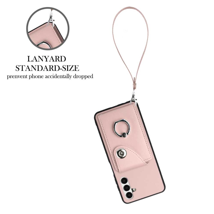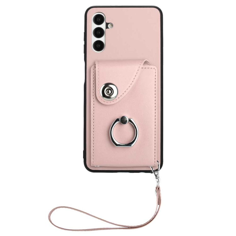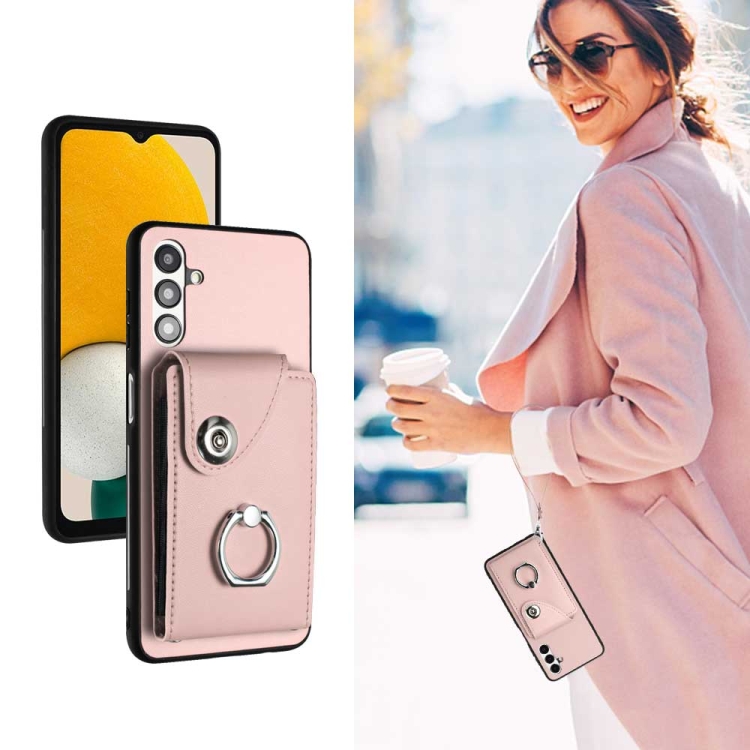 Funda para Teléfono Samsung Galaxy A13 5G A04S de PU con Soporte para Anillo Bolsa para Tarjeta y Cordón (Rosa)