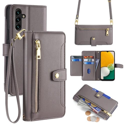 Funda para Samsung Galaxy A13 5G Cuero con Billetera Cremallera Cuerpo Cruzado Textura Oveja (Gris)