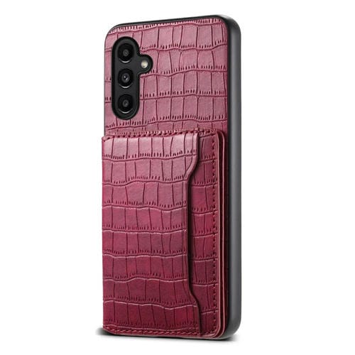 Funda para Teléfono Samsung Galaxy A13 5G Diseño Bolsa para Tarjetas Textura Cocodrilo (Rojo)