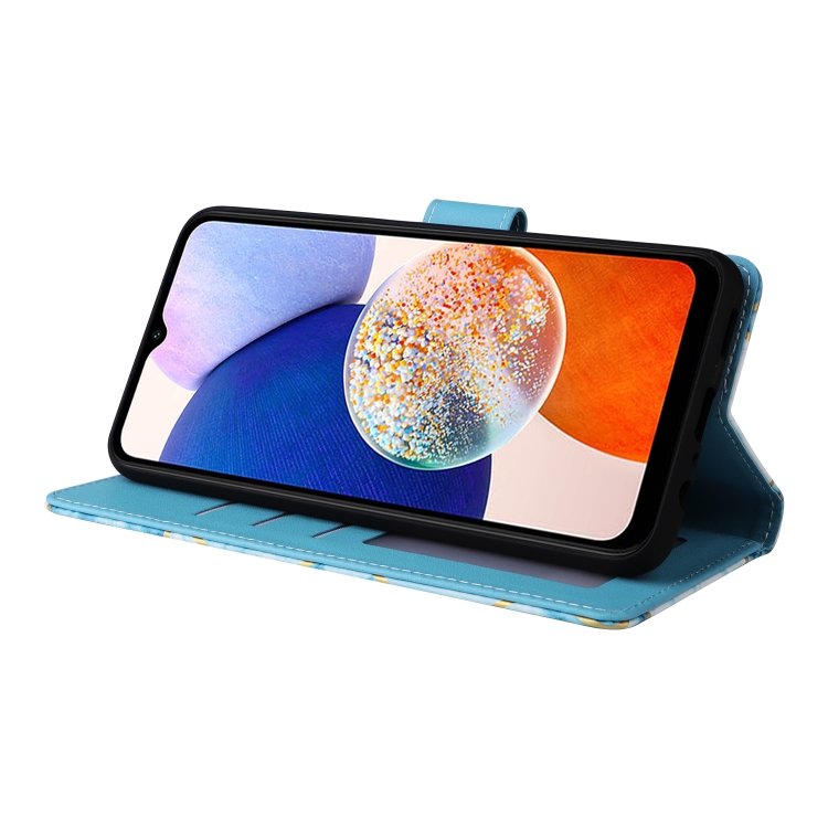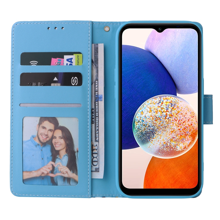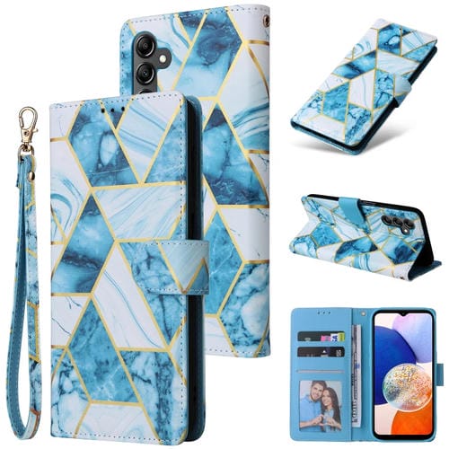 Funda de Cuero Samsung Galaxy A15 5G con Costuras Bronceadoras Mármol (Azul)
