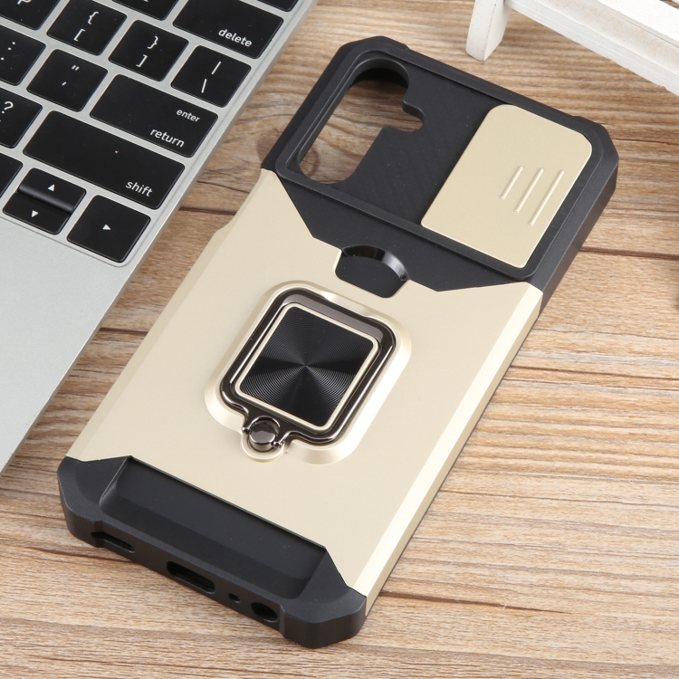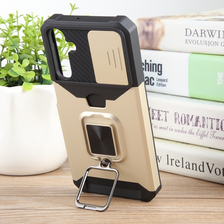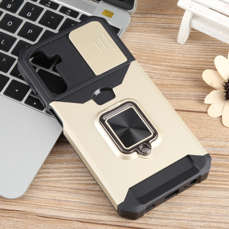 Funda para Teléfono Samsung Galaxy A15 Shield Cámara Ranura para Tarjeta PC TPU (Oro)