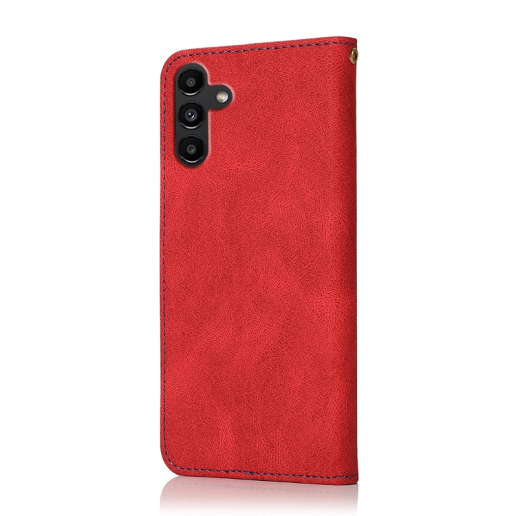 Funda de Cuero para Samsung Galaxy A15 con Costuras de Dos Colores (Rojo Azul)