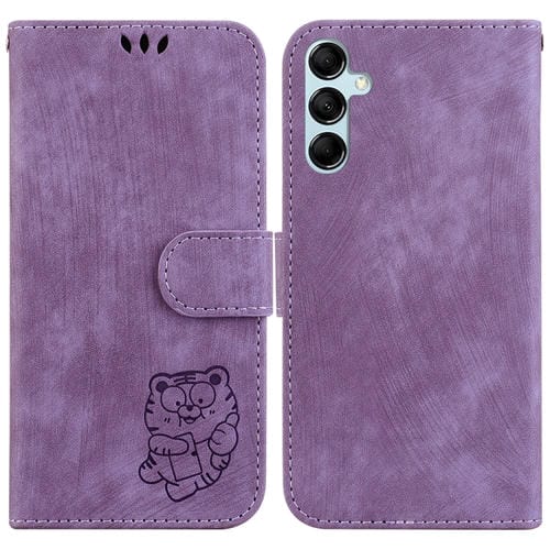 Funda de Cuero Samsung Galaxy A15 Little Tiger con Relieve (Púrpura)