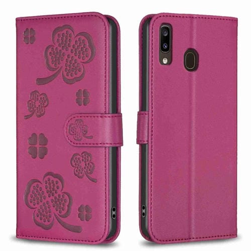 Funda para Teléfono Samsung Galaxy A20 A30 Cuero Relieve Cuatro Hojas (Rojo Rosa)