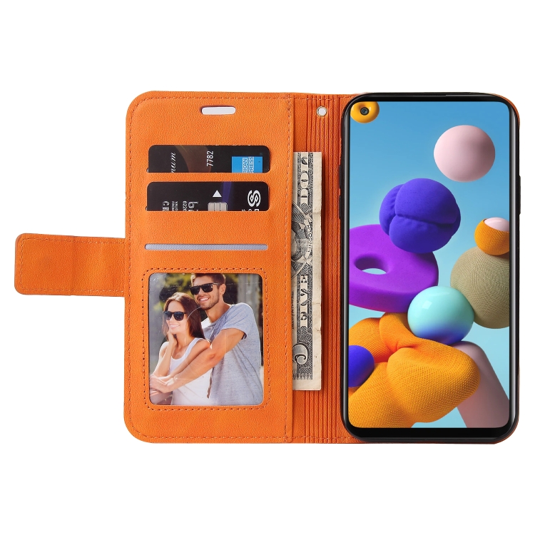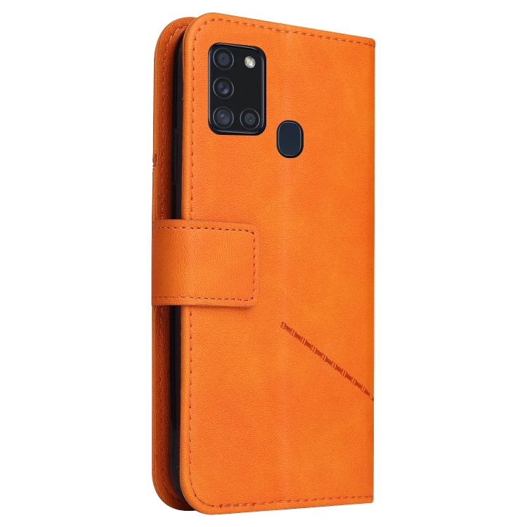 Estuche para Teléfono Samsung Galaxy A21S Gq Utrobe Cuero En Ángulo Recto (Naranja)