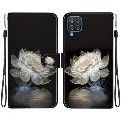 Funda de Cuero Samsung Galaxy A22 4G con Dibujo Coloreado y Textura de Cristal (Peonía de Cristal)