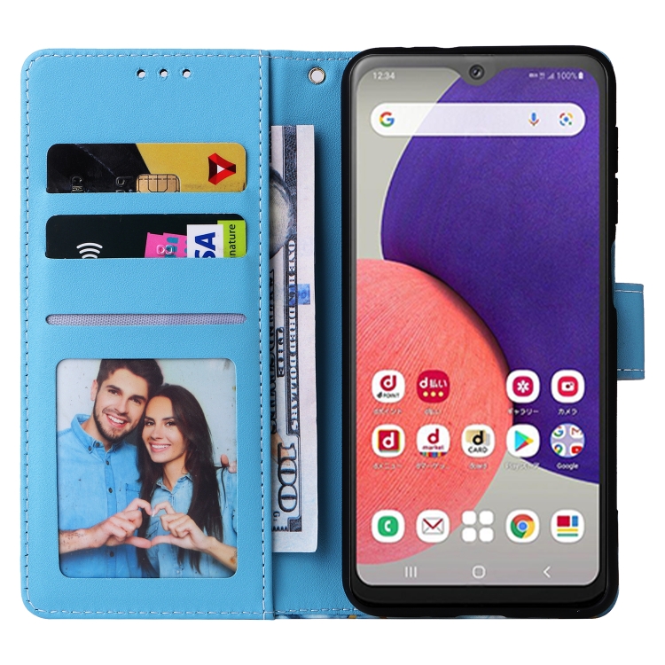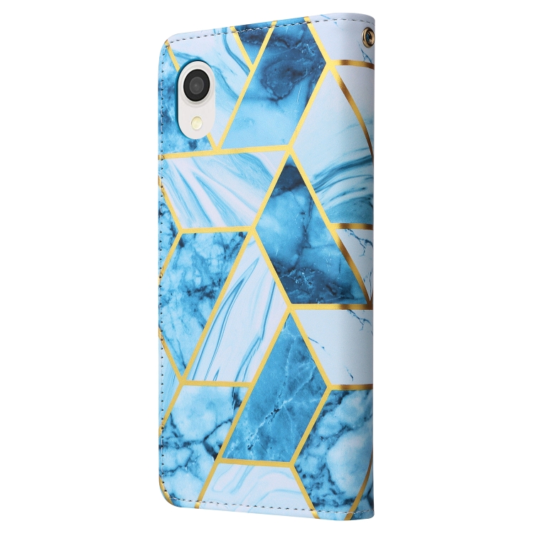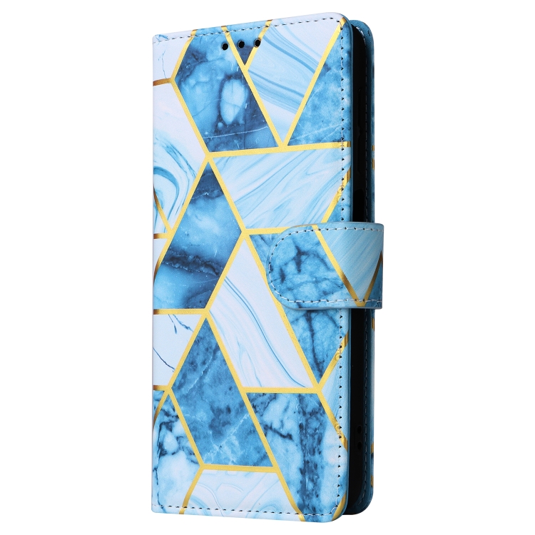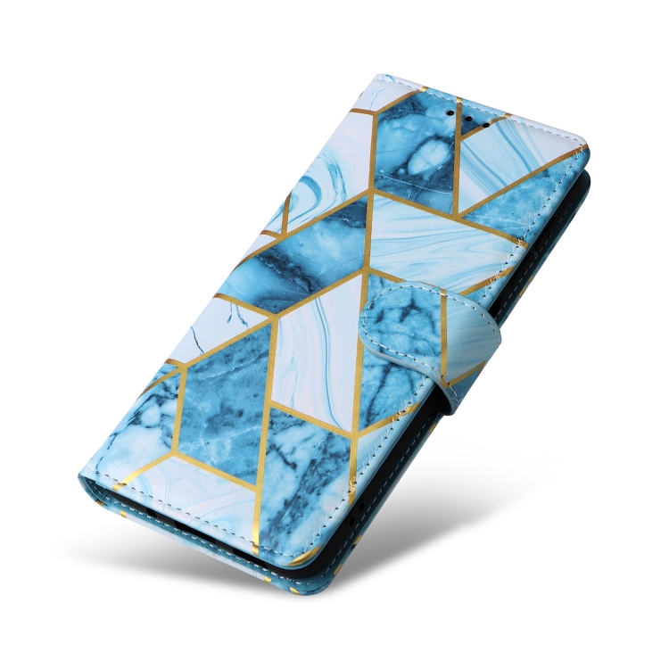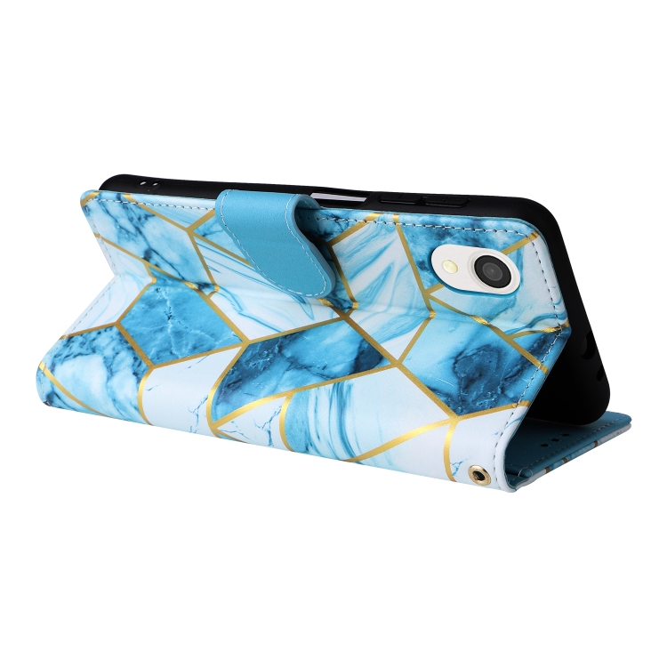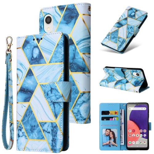 Estuche para Teléfono Samsung Galaxy A22E 5G Cuero con Costuras Bronceadas Mármol (Azul)