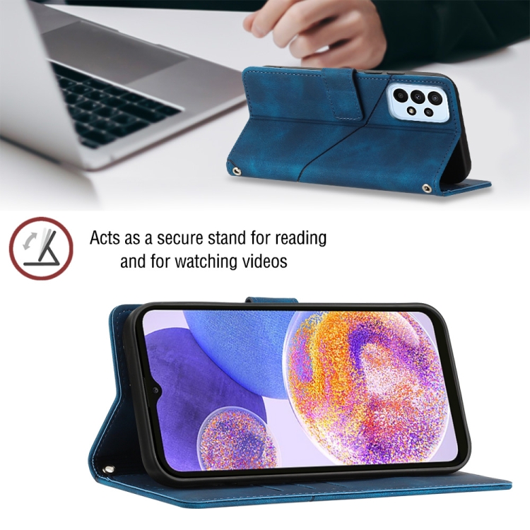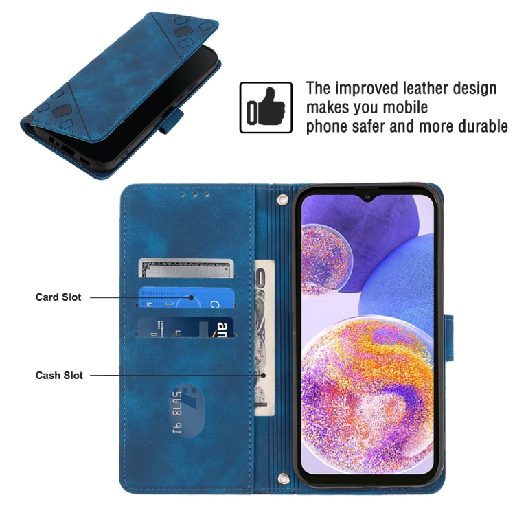 Estuche para teléfono Samsung Galaxy A23 4G F23 5G Cuero en relieve con tacto de piel (Azul)