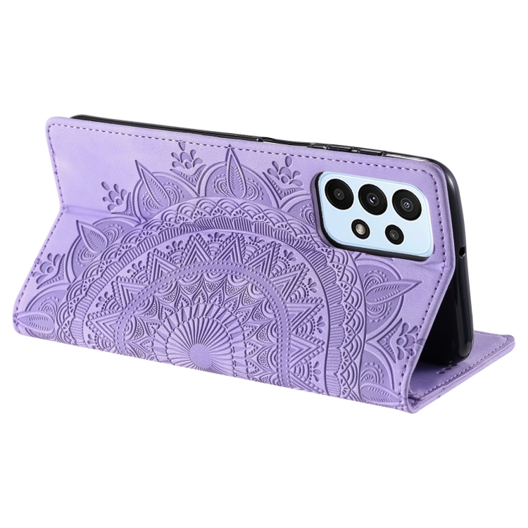 Estuche para Teléfono Samsung Galaxy A23 4G / F23 5G Cuero Magnético Relieve Tótem (Púrpura)